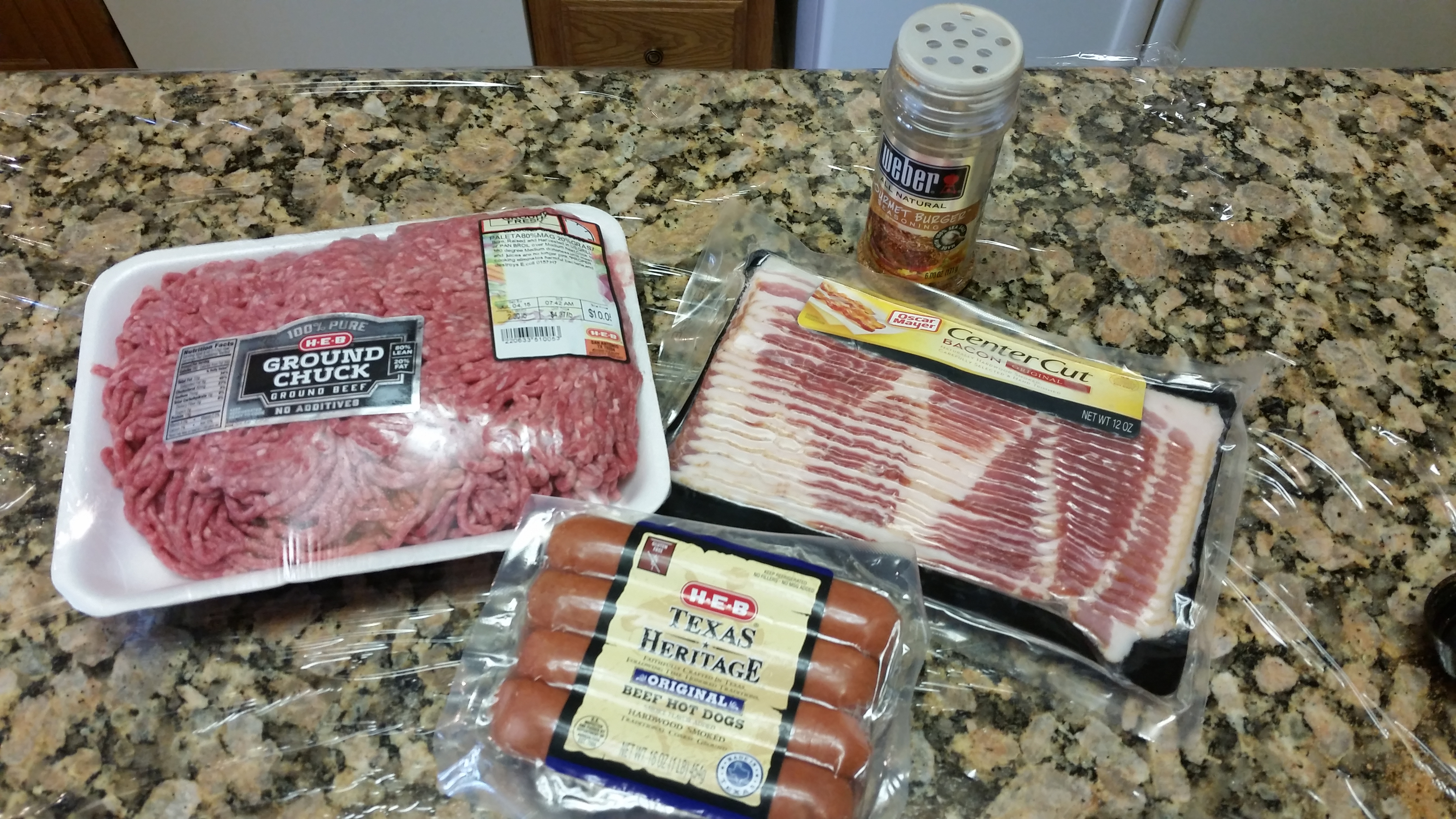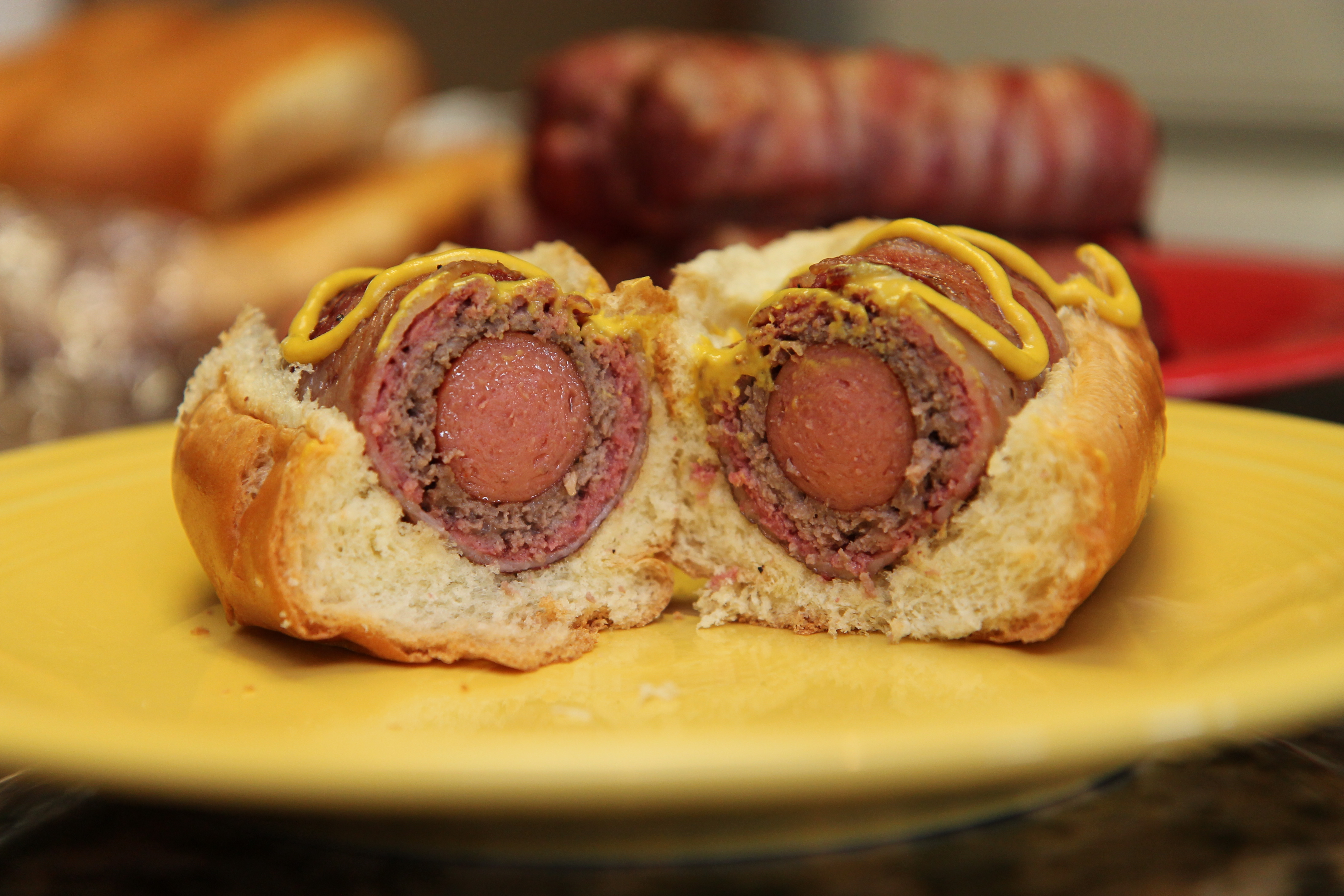 The name of this dish really says it all. How can you go wrong with combining Bacon with Hamburger and a great Hot Dog? I came across this manly combination on YouTube and you can find multiple versions of this video on the net. As soon as I saw it I could hardly wait to put it to the test.