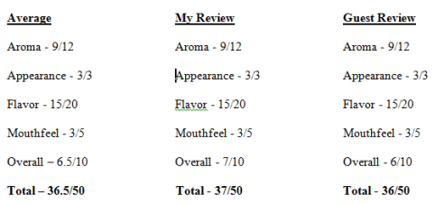 Sticking with the same format used on my initial review I enlisted Trailergating’s own Ryan Goyer to act as my Guest Judge this time around. Now, onto the beer!